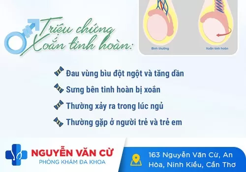 – Tình trạng tinh hoàn tự xoay quanh trục khiến thừng tinh đột ngột tắc nghẽn. Lúc này lượng máu đến nuôi tinh hoàn bị giảm nhanh chóng nên dẫn đến hiện tượng đau và sưng tinh hoàn một bên, thậm chí là cả 2 bên, bìu sưng to.