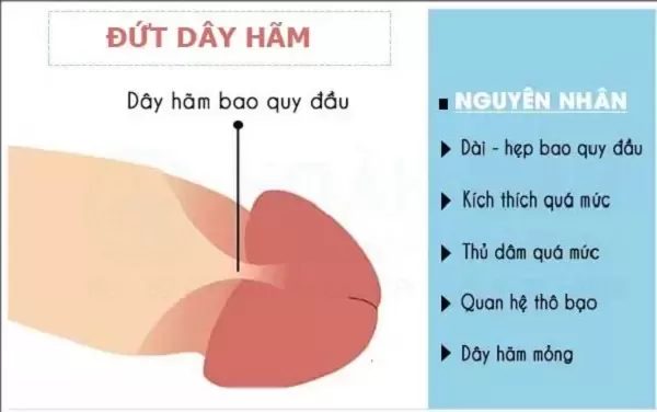 → Thủ dâm quá mạnh, dương vật bị kích thích quá độ mà dây phanh ở bao quy đầu ngắn không đủ để hãm lại sẽ khiến cho dây hãm này bị đứt.
