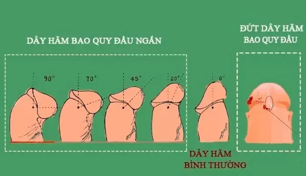 → Trường hợp này thường thấy do nguyên nhân bẩm sinh. Dây phanh bao quy đầu ngắn chính là tình trạng mà dây phanh không đủ kích thước để có thể điều chỉnh được sự cương cứng của dương vật mỗi khi nhận được kích thích.