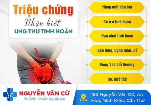 Ung thư tinh hoàn: bệnh khiến cho khiến phái nam đau cũng như khó chịu ở tinh hoàn, bìu, nổi hạch ở cơ quan sinh dục,… Thậm chí, còn kèm theo hiện tượng đau âm ỉ vùng bụng dưới hay háng, tương đối khó thở,…