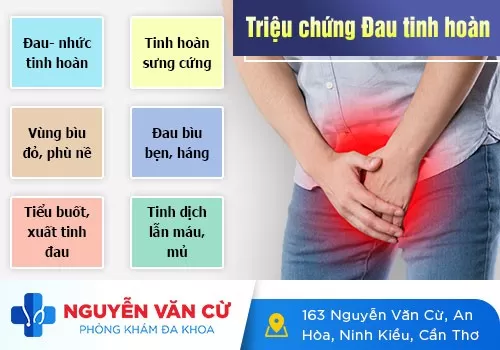Xuất hiện cảm giác đau tinh hoàn, sưng tấy, đau vùng bìu.
