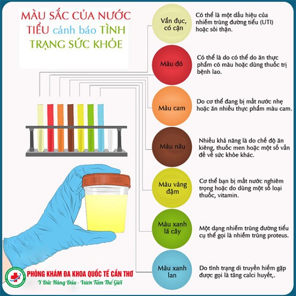 - Nước tiểu có màu khác thường do thuốc hoặc thực phẩm.