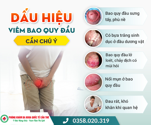- Bao quy đầu có mùi hôi, thường xuất hiện máu, mủ trắng không rõ nguyên nhân.